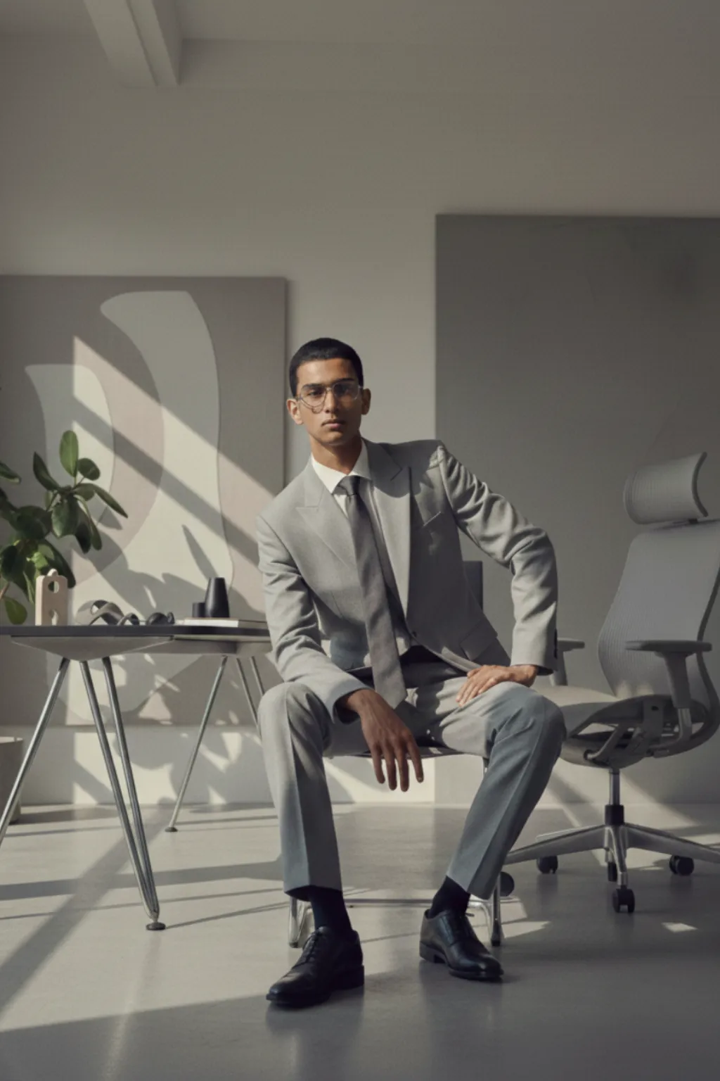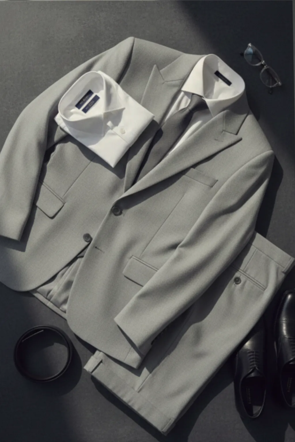 Clean grey tailoring with a modern cut.